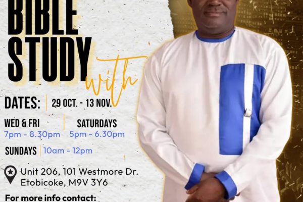 Our dear Brother Dan Owusu Asiamah will be visiting the Toronto Church for two weeks from 29th October 2022 – 13th November 2022. We will be having a series of Bible studies with him starting on Wednesday 2nd November. Also, he will be visiting Sankofa Radio Station 101.3fm (8:10am –...
